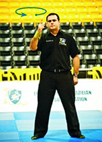 After pointing to the athlete with arms extended towards his/her waist, hand at shoulder height with open palms making a circular motion.